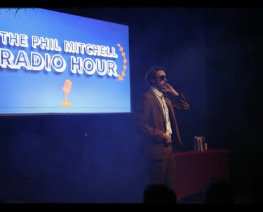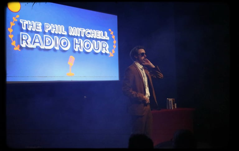 The Phil Mitchell Radio Hour is a one-man show that follows an evangelical radio host who is on air as the rapture occurs.