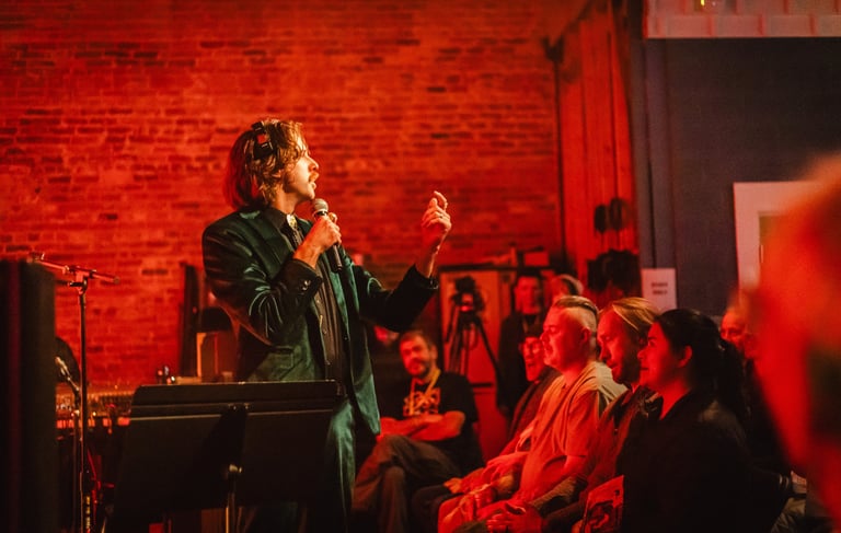 Noah originally developed the work as a 25-minute solo exploration as a part of his graduate program's Odyssey of The Soul solo festival. Throughout the 7-month developmental process, Noah was guided by his professors: Mandy Fox, Tom Dugdale, and Kevin McClatchy who instilled vital guiding questions along his path such as...what is the live audience's role? Noah also had the amazing opportunity to workshop the show early on with actress Olwen Fouéré.